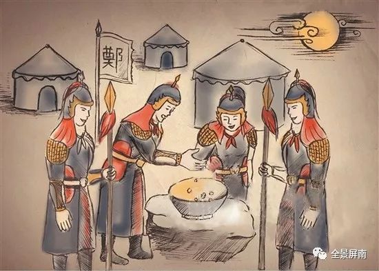 郑成功为将士设计了博饼游戏,以解思乡之苦 中秋夜,在台南的台湾府,兵士们聚在一起博饼取乐,桌上放一只大海碗,每人轮流抓取六个骰子,掷入碗里,骰子在大瓷碗里落下,发出叮叮当当的脆响,兵营中不时响起兵士们的喝彩和欢笑。 “八月望郎八月八,八月十五望月华,手拿月饼来坐下,倒杯茶香陪月光。”中秋又是文人雅士风流聚会、吟诗作赋的好时光。甘国宝闲暇时,本就喜欢轻装素服,与当地绅商和兵部衙堂的属员饮酒酬酢,谈论地方兴革诸事,如今遇着个中秋节,更是早做好了请客喝茶的准备。 只听门外人报一声:“宪台邹大人到!” 原来是台湾府知府邹应元及其幕僚一行来访。甘国宝连忙延请至益求堂,双方分宾主坐定。 沏好了茶水。一时大厅里清香弥漫,甘国宝抱拳拱手,说:“今日幸会,有朋自远方来,不亦乐乎,感谢大家的光临,清茶一杯,不成敬意,请用茶!”客人们也抱拳朝他揖了揖,齐声道:甘将军先请。甘国宝说:同请、同请。客人们这才伸手去端茶杯。 邹应元接过茶盏,揭开茶盖,眯起双眼,低下头去深深地吸了一口长气,又缓缓地将茶气吁出,然后,浅浅地啜了一小口。他用舌尖把茶水卷到喉咙口,接着又推到唇齿间,再用舌尖把茶水拨散在嘴里。这样反复地细品,才把茶水慢慢地咽了下去。这才打开双眼看杯里的茶叶,情不自禁地赞道:好茶,真是好茶! “将军府上,是福建哪一府?”邹应元问。 甘国宝连忙说,本人福州府人氏,老家原籍在古田,雍正十三年分县,属了屏南县。 邹应元放下茶杯,看着甘国宝,接着说:这茶可是正宗的建宁府武夷贡茶啊。此茶外观独特,一看便知,条索粗黑紧凑,茶汤鲜绿带翠,种种都似武夷贡茶有风采。——不过这茶滋味甘爽香浓,倒没有武夷岩茶的焦火炭味。 甘国宝答道:老家这茶,并没有什么雅称。这茶虽说比不上您太湖洞庭山的碧螺春,但说起历史来,也是要溯源到北苑贡茶,是将茶叶委凋后揉搓出苦汁,再用银板压实,称为龙凤团茶进贡。北苑茶之后,才有武夷山茶。前朝明太祖感念民生艰辛,以为这样劳民损财,下诏停止制造龙团凤饼,改为芽茶、散茶进贡。屏南各山皆有此茶,香味嘛,有的似武夷岩茶浓酽,有的又像松萝清芬,因为高山多云雾,所产的茶叶品质都好。” 在一片赞叹声和氤氲水汽中,平生不平事,尽向毛孔散,甘国宝不免心思又飞回到了故乡。眼前一杯茶,老家的人都叫它“茶米”,那可是五行相生的道理,全在其中哩:木本茶叶,搁在铁的锅中,土灶上生起火来,那炒出的茶叶加上热水,顾了手上这一杯茶,不就五行都在其中了么?……自己打小就喝茶,如果从外婆的白鹭沙洲的茶店算起,那么自家通身的血液里,浸透的就全是茶的水茶的香了。喝茶与吃饭一样重要,所谓“茶哥米弟”。小时候玩得累了,感到口渴了,跑回家后急急忙忙端起茶壶,“咕咚咕咚”一阵牛饮。喝的茶是苦的,但苦过之后就有回甘。舌尖的苦,喉间的甘,就在这如此反复过程中,喝茶就成了习惯,早晨起来不喝茶,一天下来就没精神,喝茶都喝成了瘾了。…… “来!来,过厝都是客,喝了不生分”,主人的热忱浓缩在一碗热腾腾的茶水里,再远的距离、再难的路程,都 融化在亲切的茶香里,主客间的情感就这在一递一接中相互温暖并传递着。 …… 台湾文化中的“八家將”信仰:甘、柳、范、謝四爷合称“四將”; 春、夏、秋、冬四神并称“四季神” 甘国宝镇守台湾期间,除了训练士卒加强防范,教导番民“明礼仪,务耕种”,还为当地人留下了这一道“国宝茶”。 闽东有句茶谚:“天亮一碗茶,药店无交家”。这茶喝了能醒脑、明目、清胃、润肺、洗肠、通气,甘国宝两度戍台,为治疗“水土不服”这种思乡病,随身带着家乡所产的茶叶,后来,在瘴疬丛生的番地,不期治好了番民的“瘟病”,甘大人“茶米”能治病的消息渐渐传开,不少人来都来求神茶。台湾的地理和气候与闽东相似,他借回乡探亲时机,有意带来家乡的茶籽播种。后来,经过台南原住民一代又一代的精心培育和呵护,茶园渐成规模,形成了独特的茶园景观和适合茶树生长的小气候区。当时茶叶没有严格分类,文献也没有记载是哪一种茶叶,因为这茶是因甘国宝将军带来的,所以当地人们传来传去,就成了“国宝茶”。