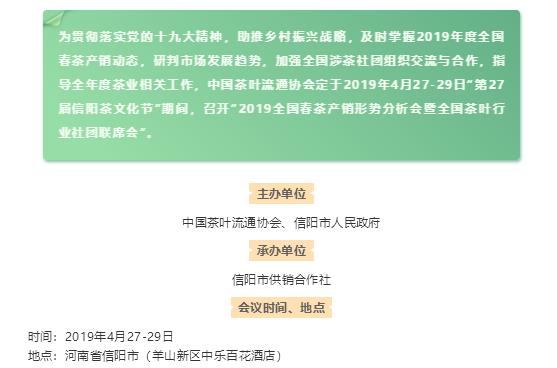 关于邀请参加“2019全国春茶产销形势分析会暨全国茶叶行业社团联席会”的通知