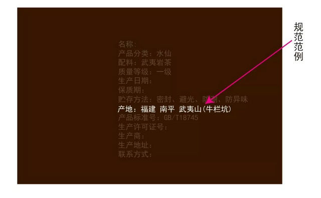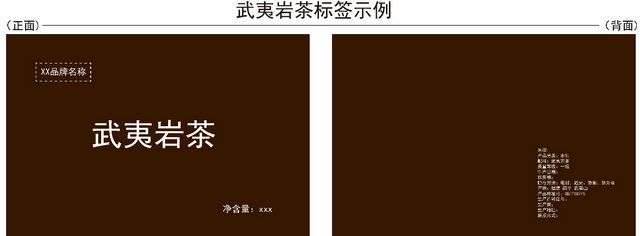 2、在使用“新创名称”、“奇特名称”、“地区俚语名称”或“商标名称”时,未在所示名称的同一展示版面标示真实属性名称武夷岩茶或武夷红茶。