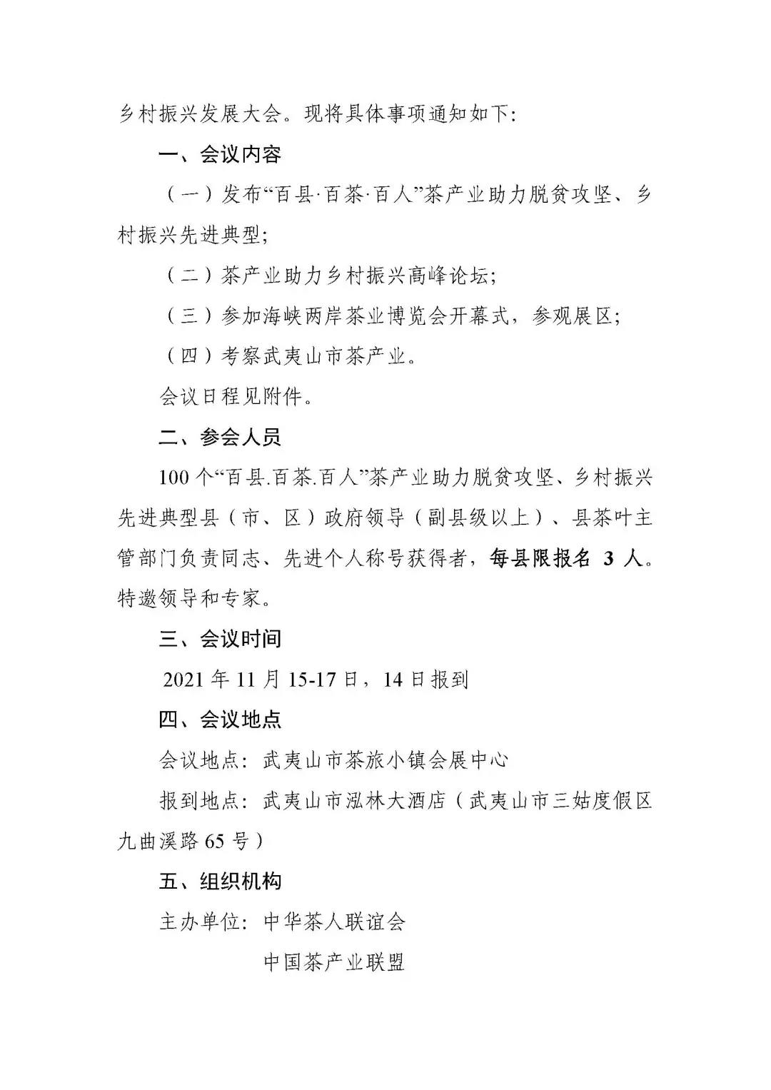 茶产业助力乡村振兴发展大会将于11月14-17日在武夷山召开